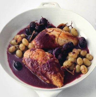 Sauteed Chicken with Roast Grapes & Grape Demi-Glace